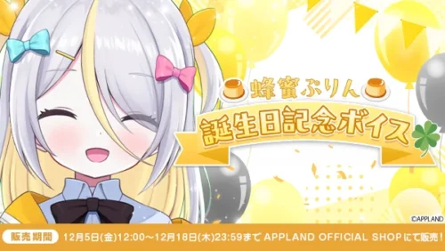 UPLANDからの嬉しいお知らせ!蜂蜜ぷりんが2025年12月5日に誕生日を迎えることを記念して、限定ボイスがAPPLAND OFFICIAL SHOPで販売されることが決定しました!みんなで盛り上げたい誕生日イベント、これは絶対に逃せないって!ボイスは通常とバイノーラルの2種類があって、しかもコンプリートセットを買ったら「プレゼント画像」もついてくるんだわ。誕生日をお祝いする声や、シチュエーションボイスが含まれているなんてファンにはたまらないんじゃないかな!