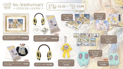 ヰ世界情緒がなんと6周年を迎えたよ!それを祝うためのオフィシャルグッズが販売されることになったんだって。オリジナルジャガードマフラー、イヤーマフ、アクリルマグネットセットなど、なんと計10点も取り揃えられてるんだわ!