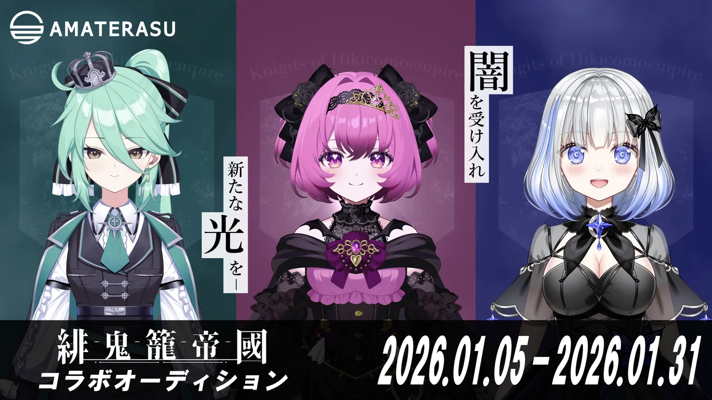 - ひきこもりをテーマにしたVTuber事務所AMATERASUがアイドルユニット緋鬼籠帝國とのコラボオーディションを開催!